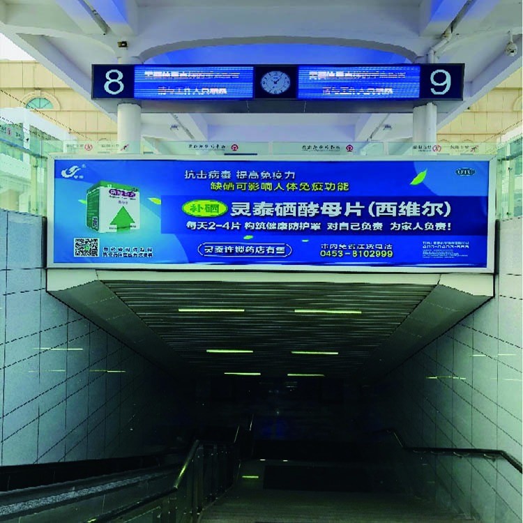 牡丹江站站台层地下道楣头灯箱