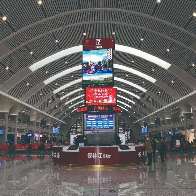 牡丹江站候车厅魔方柱