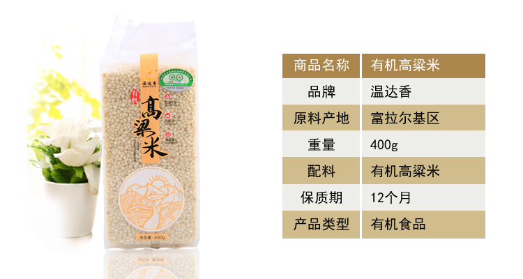 温达香 有机高粱米400g 东北特产 脱壳去皮粘白大米