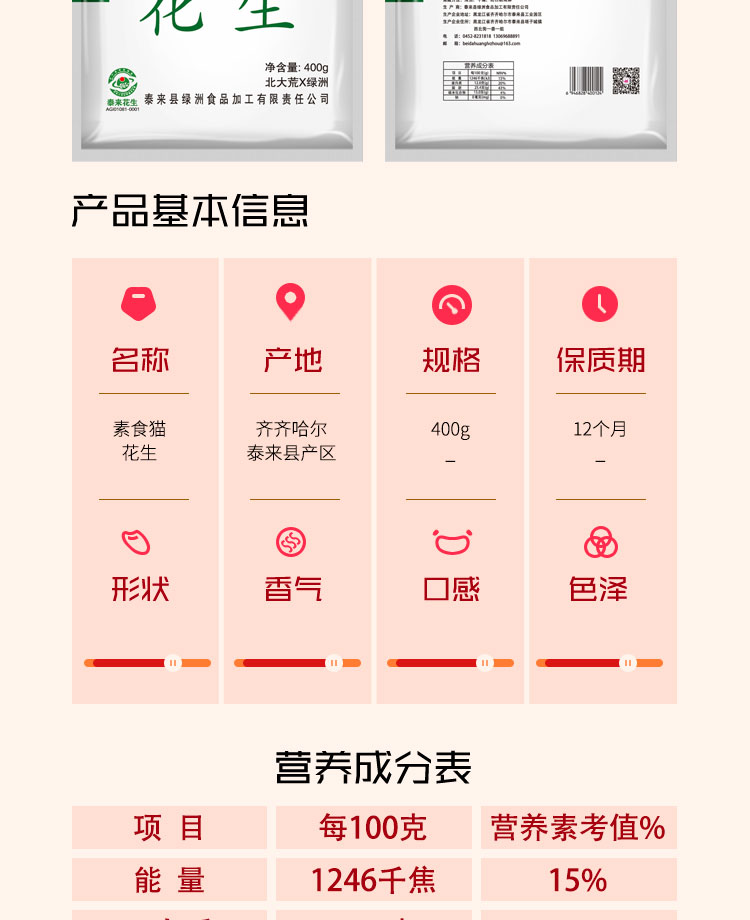 泰来县素食猫花生400克/袋真空