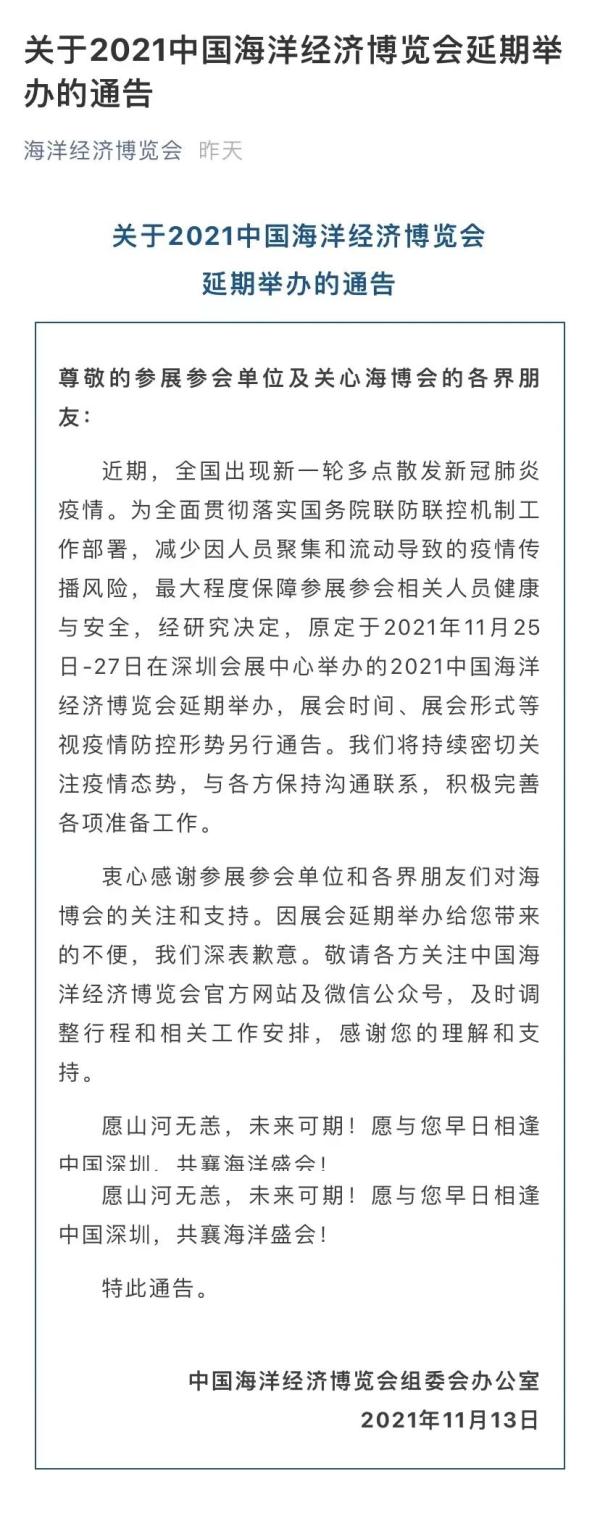 2021中国海洋经济博览会延期举办